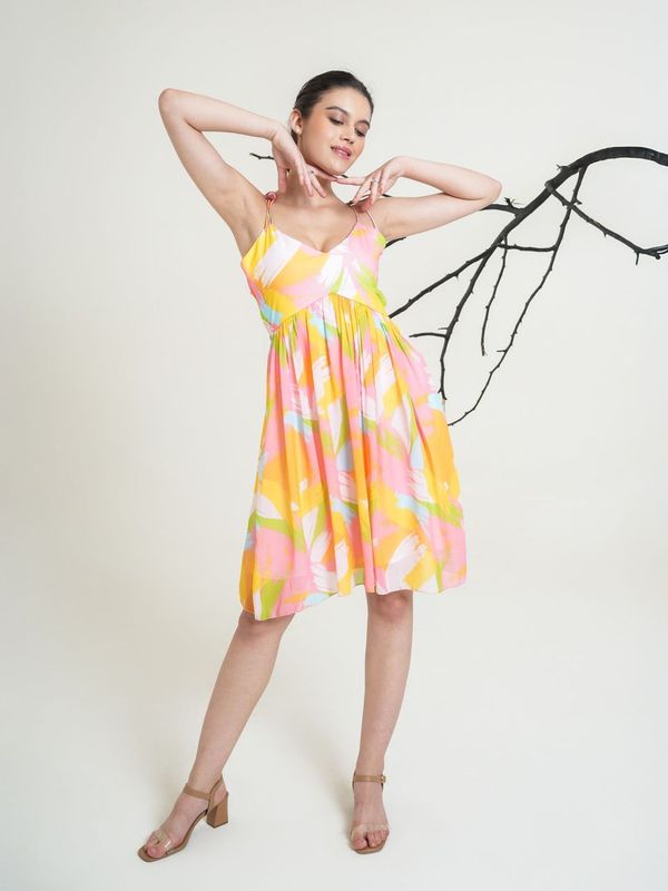 Women Peach Knee Length Strap Dress