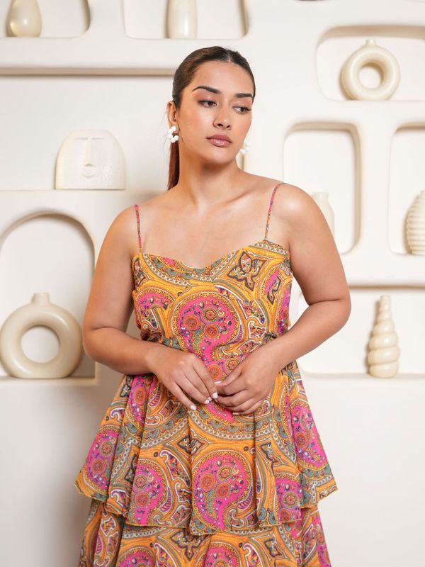 Women Yellow Sweet Heart Neck Dress