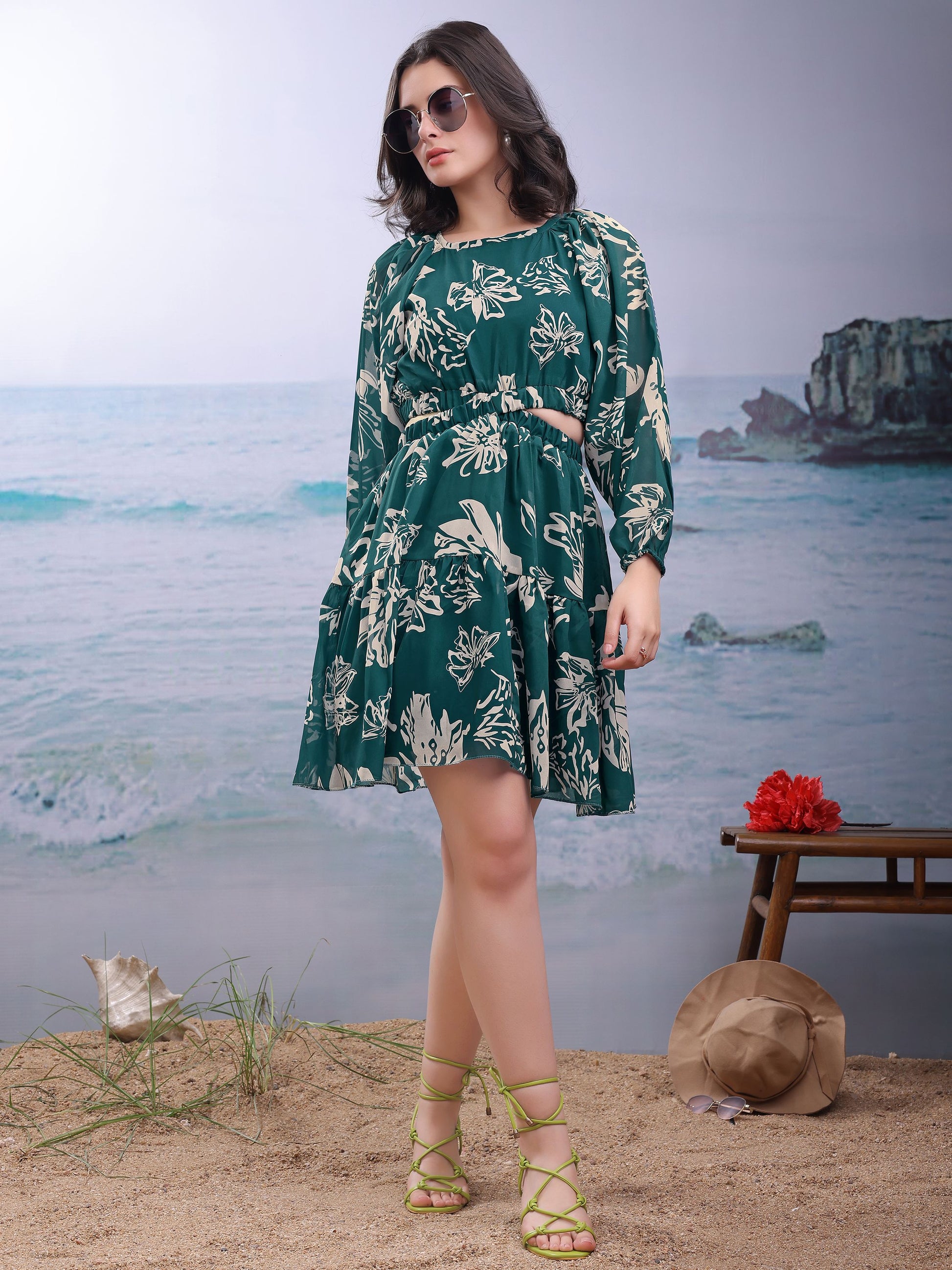 ₹ 3,399₹ 1,229Women Turquoise Casual Thigh Length Fit and Flare Dress