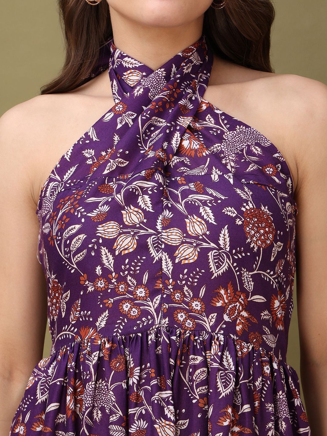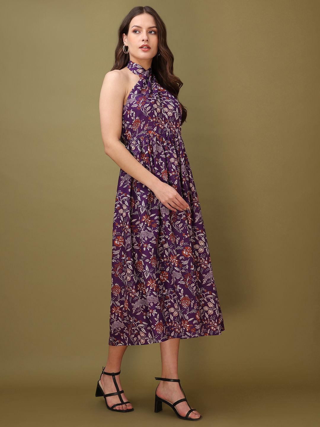 Women Purple Casual Maxi Length Fit & Flared Dress