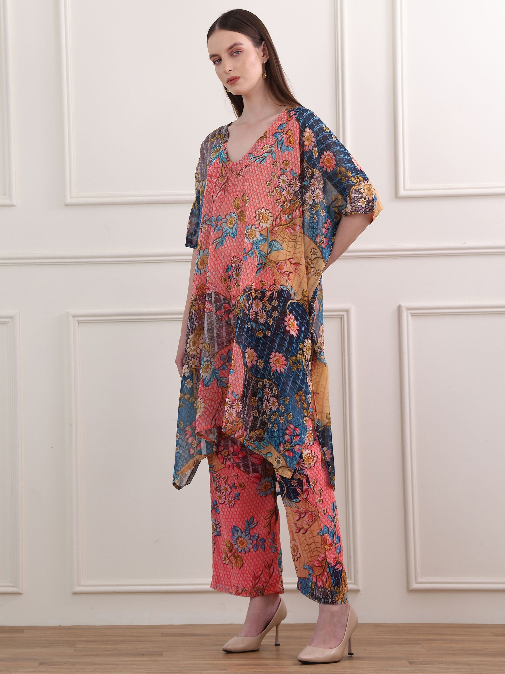 Women's Multi Regular Sleeve V-neck Tunic & Palazzos Sets