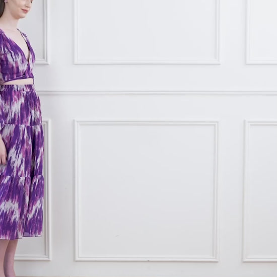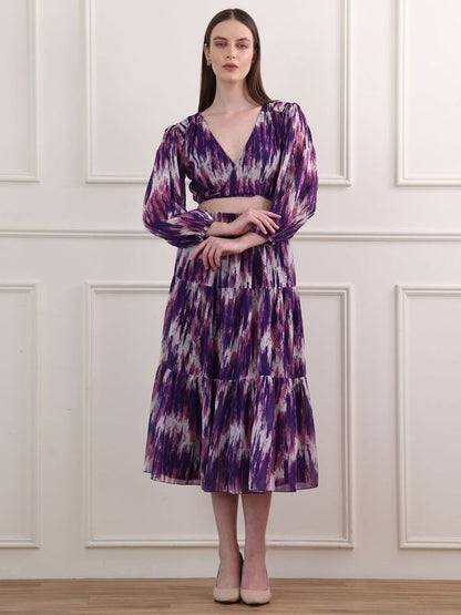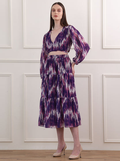 Women's Purple Stylish Puff Sleeve Top & Skirt Sets