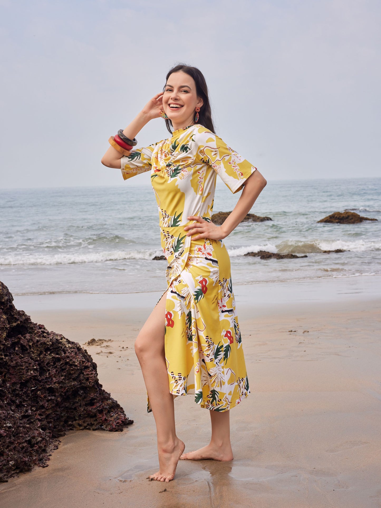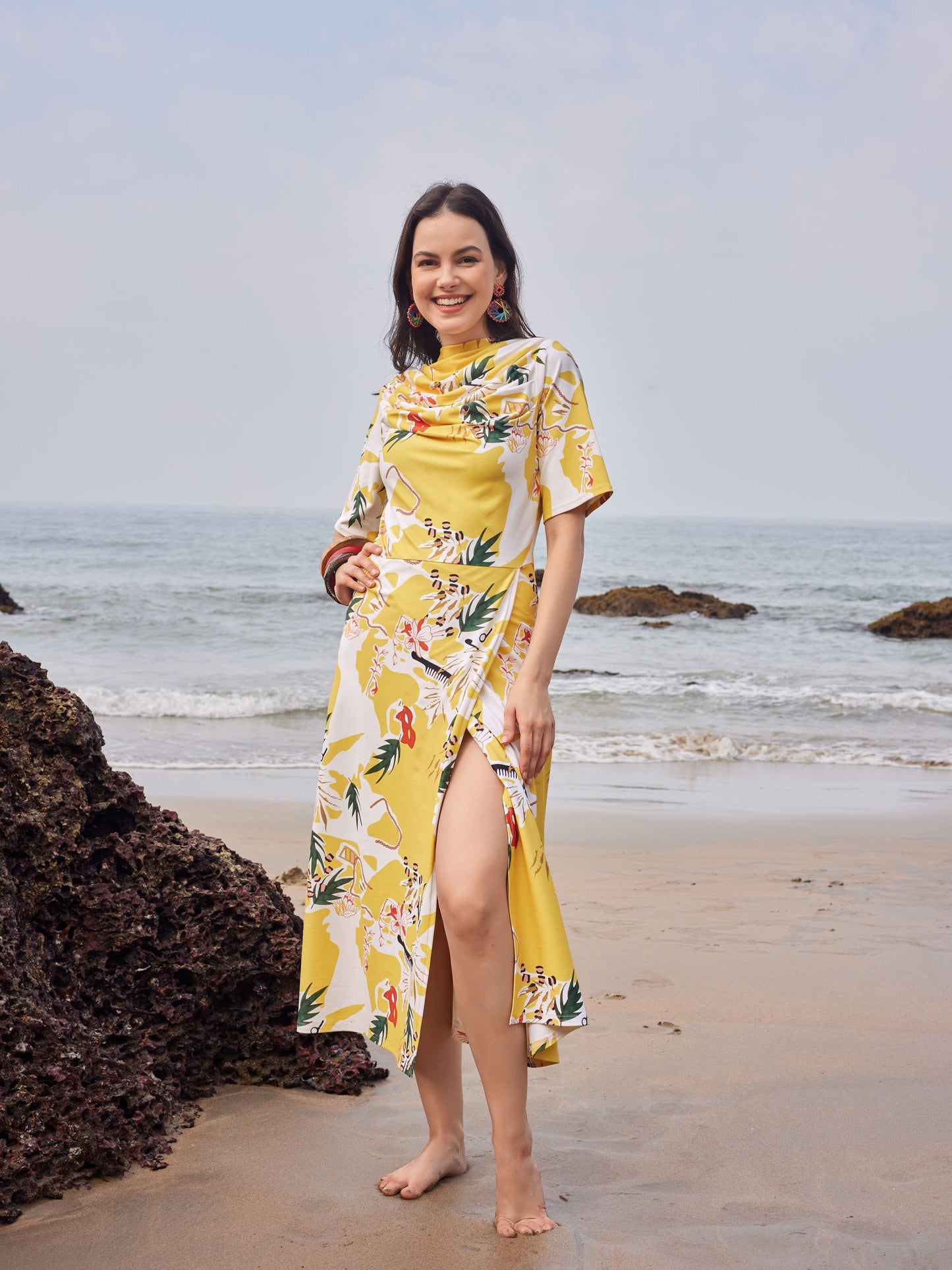 A-Line Front Silt Yellow Dress