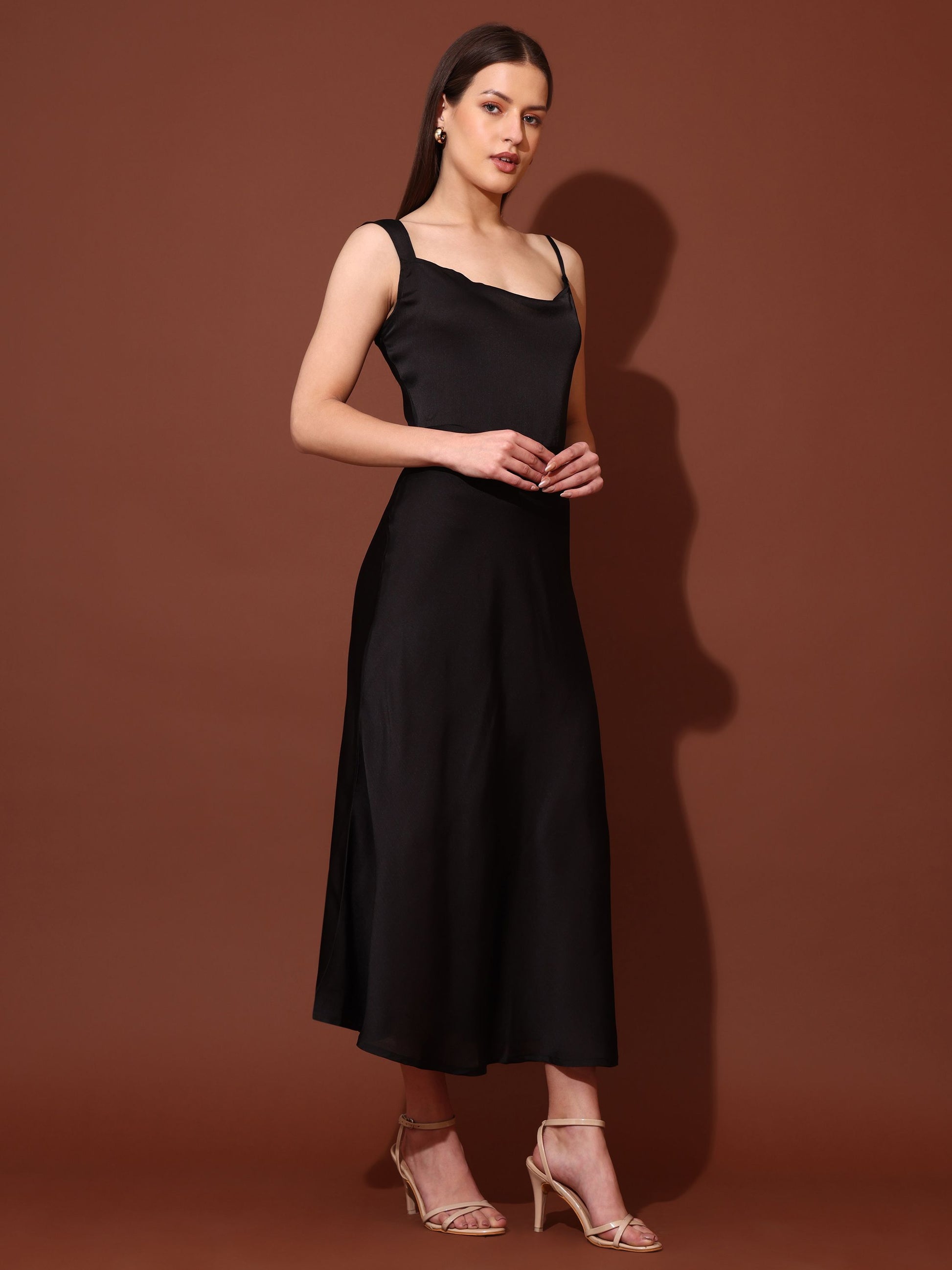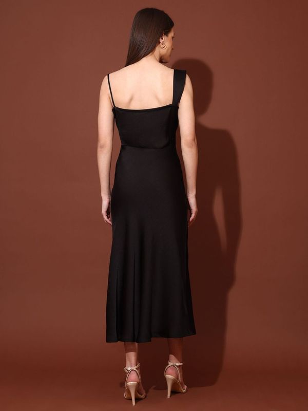 Women Black Casual Maxi Length Solid Dress
