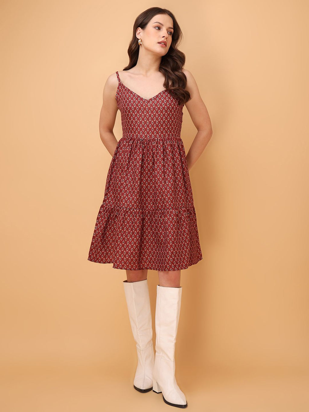Women Brown Casual Mini Length Fit & Flared Dress