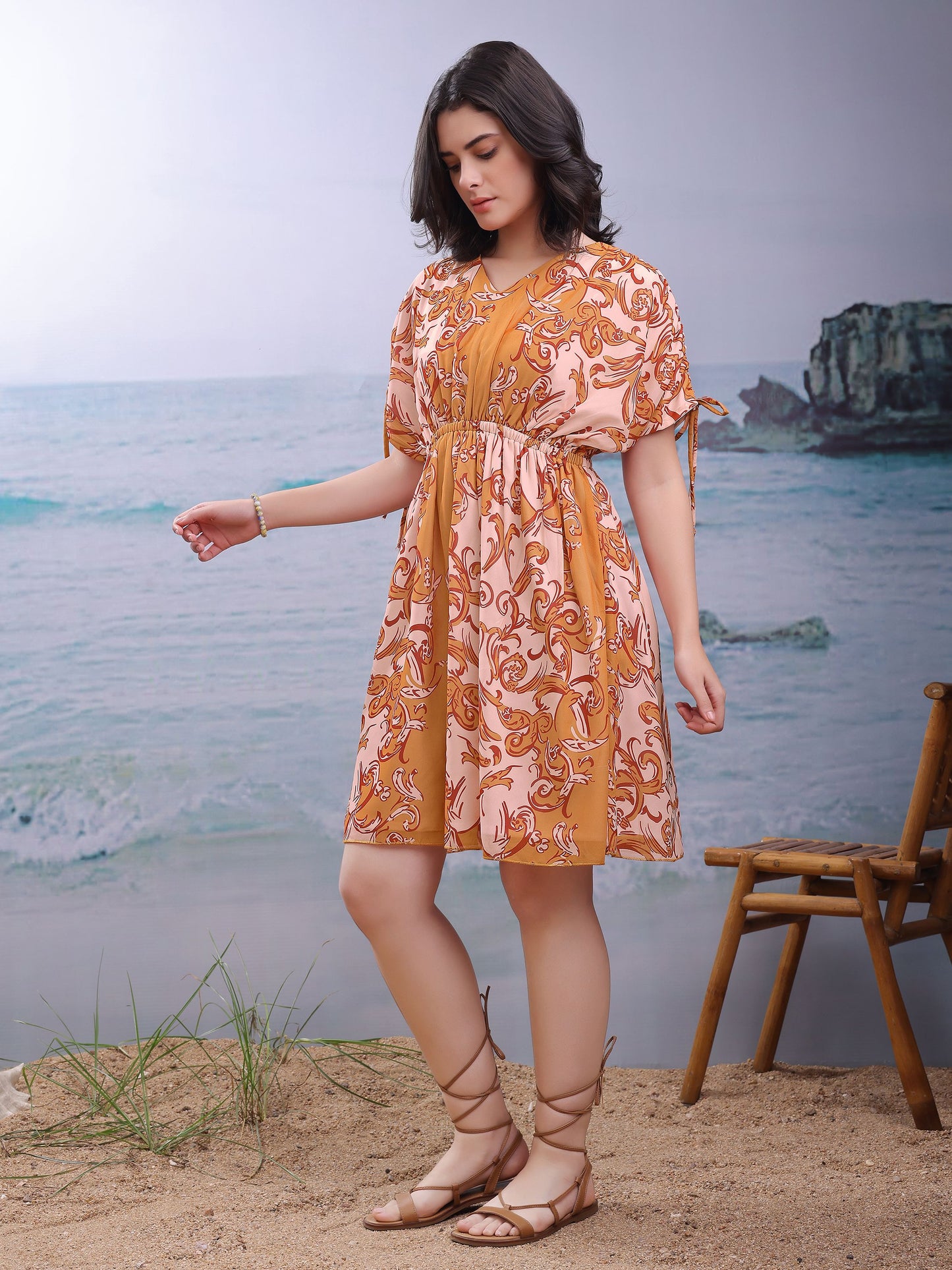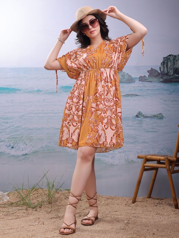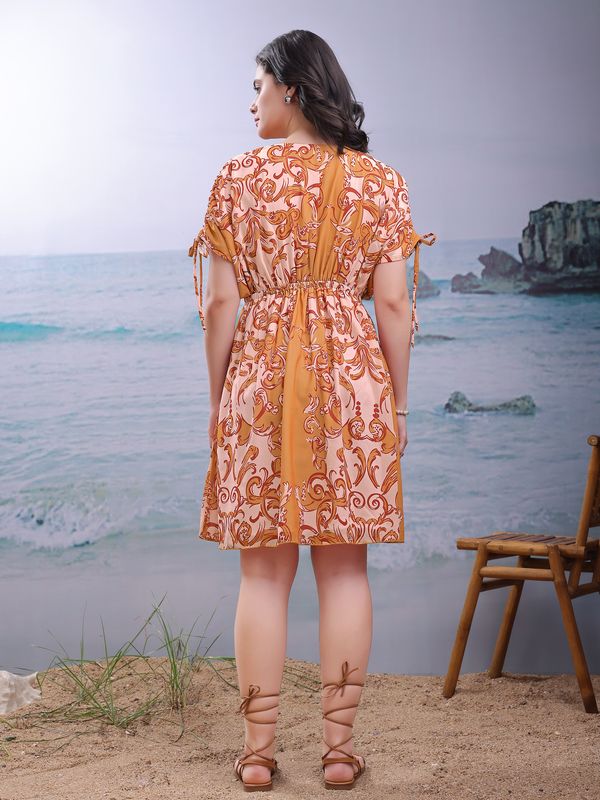Women Mustard Casual Thigh Length Fit and Flare Dress