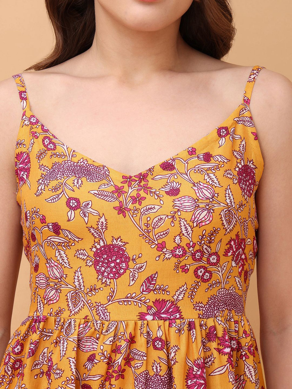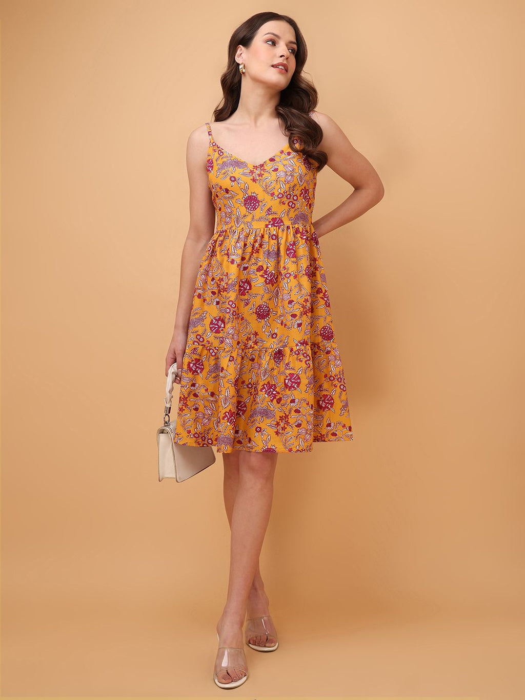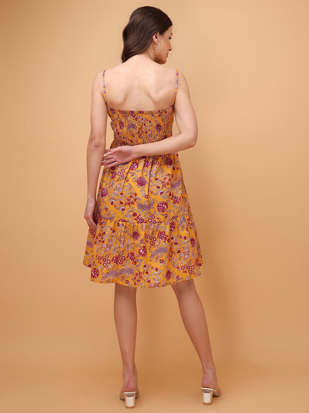 Women Mustard Casual Mini Length Fit & Flared Dress