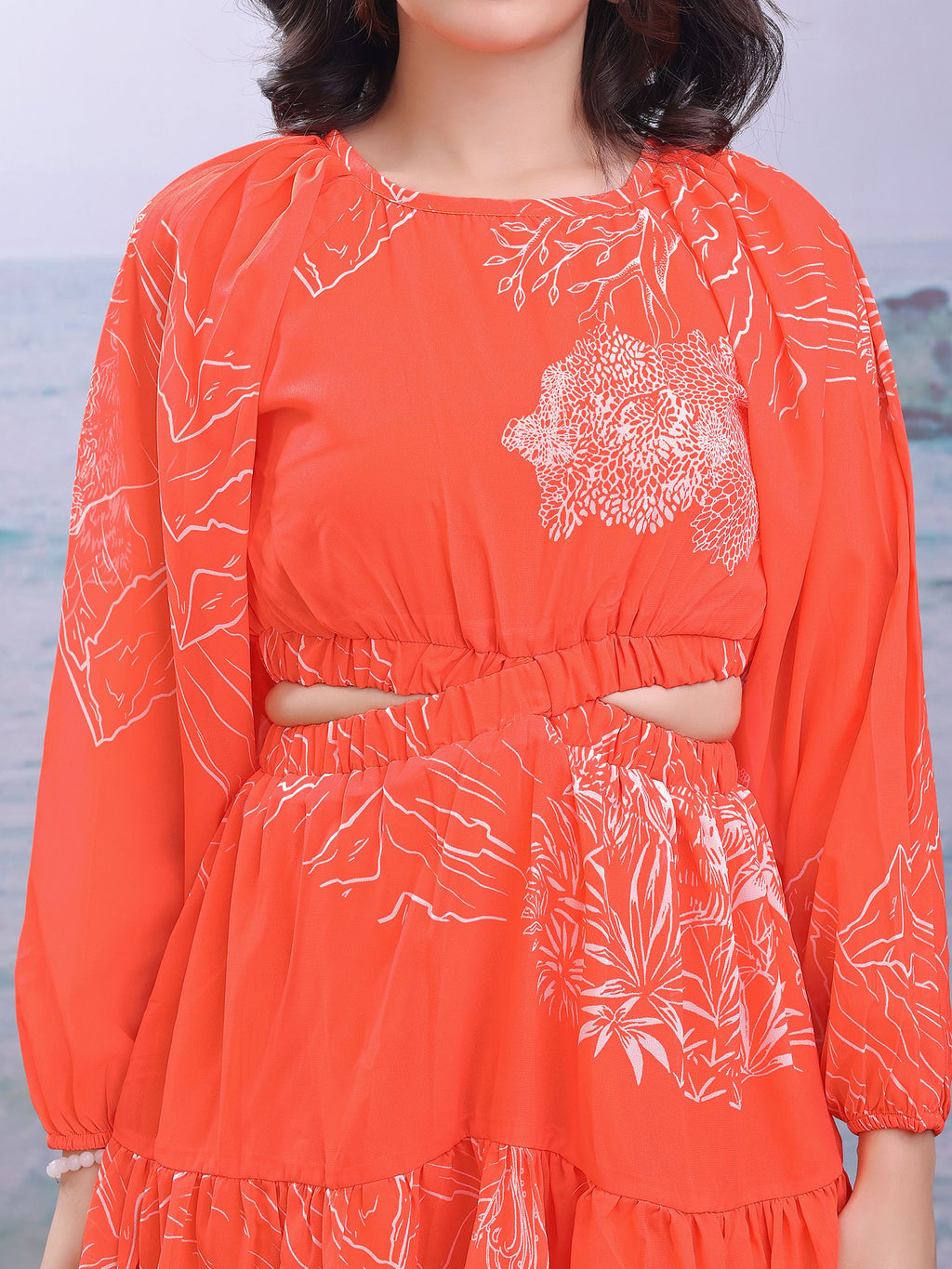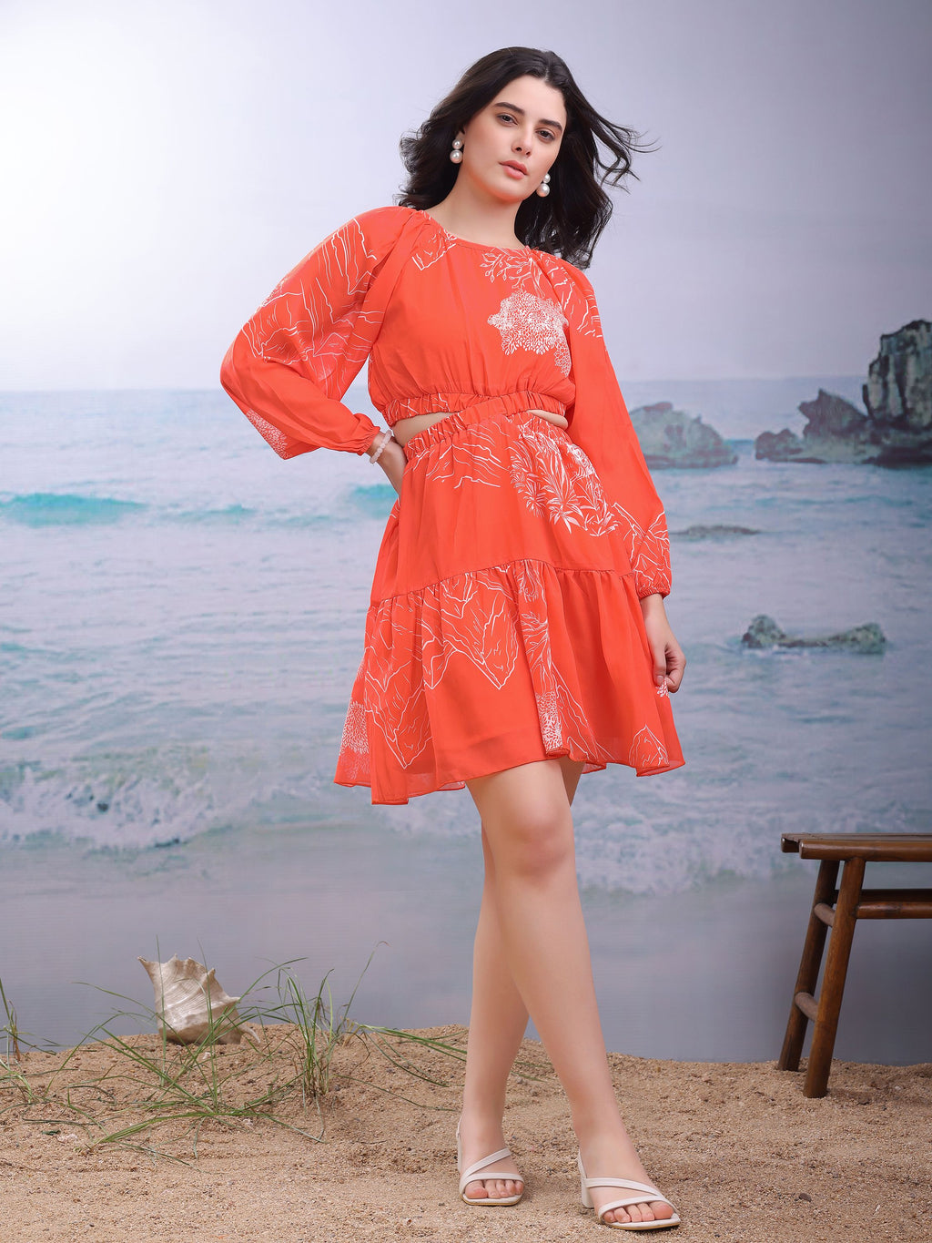 Women Orange Casual Thigh Length Fit and Flare Dress