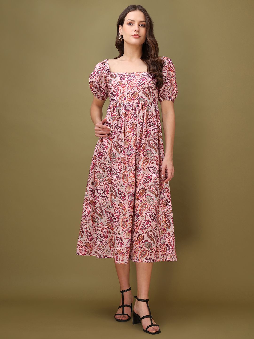 Women Pink Casual Maxi Length Fit & Flared Dress