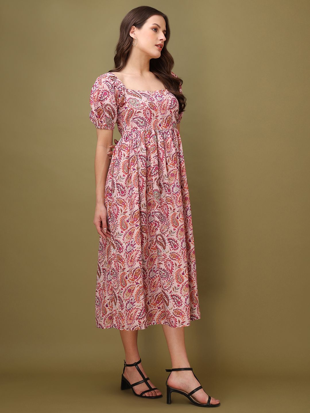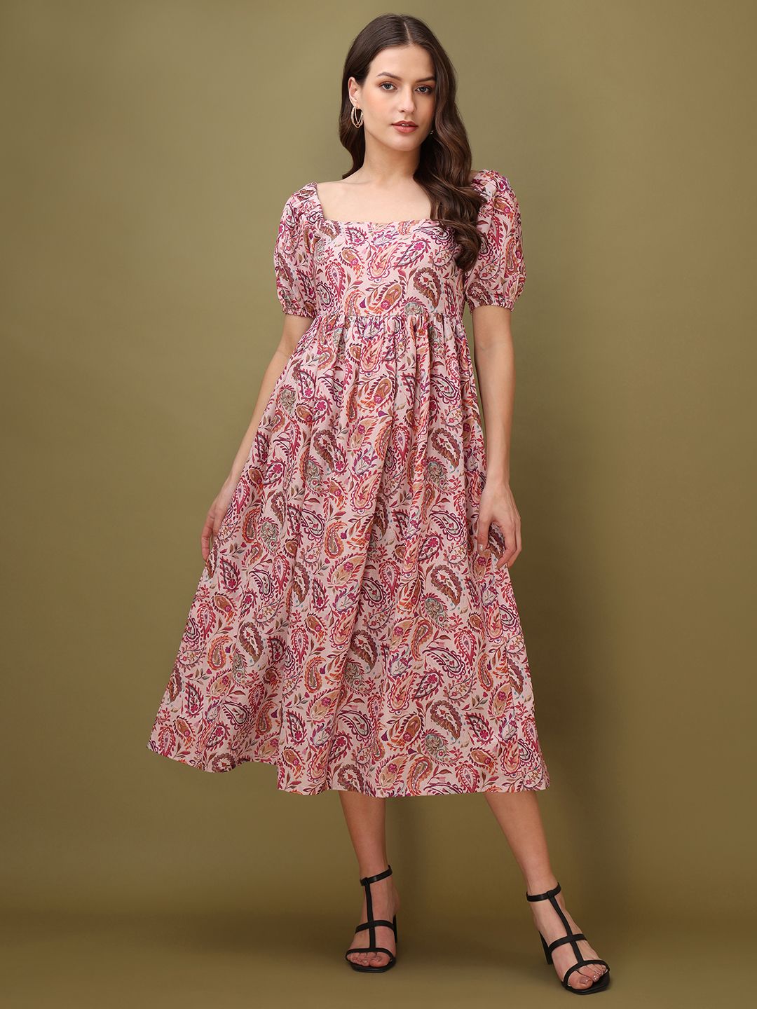 Women Pink Casual Maxi Length Fit & Flared Dress