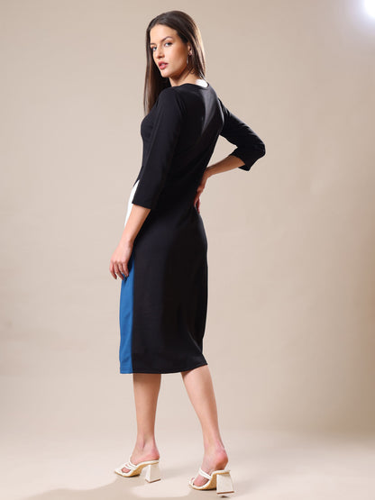 Women's Round Neck Bodycone Solid Print Teal Dress