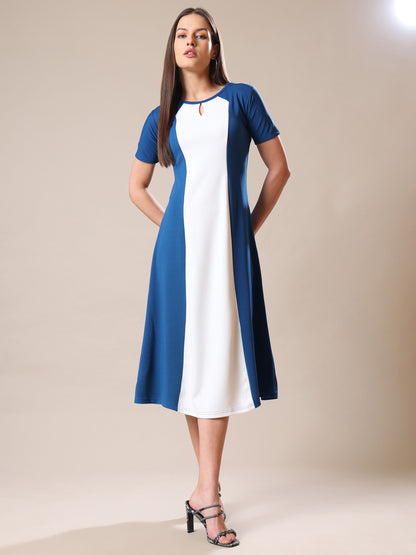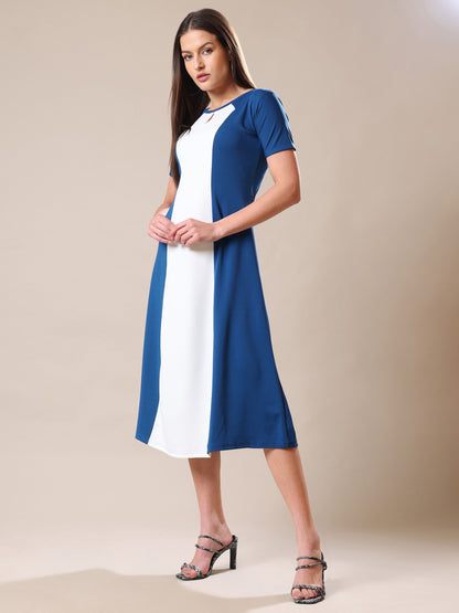 Women's Round Neck Short Sleeve Teal Dress