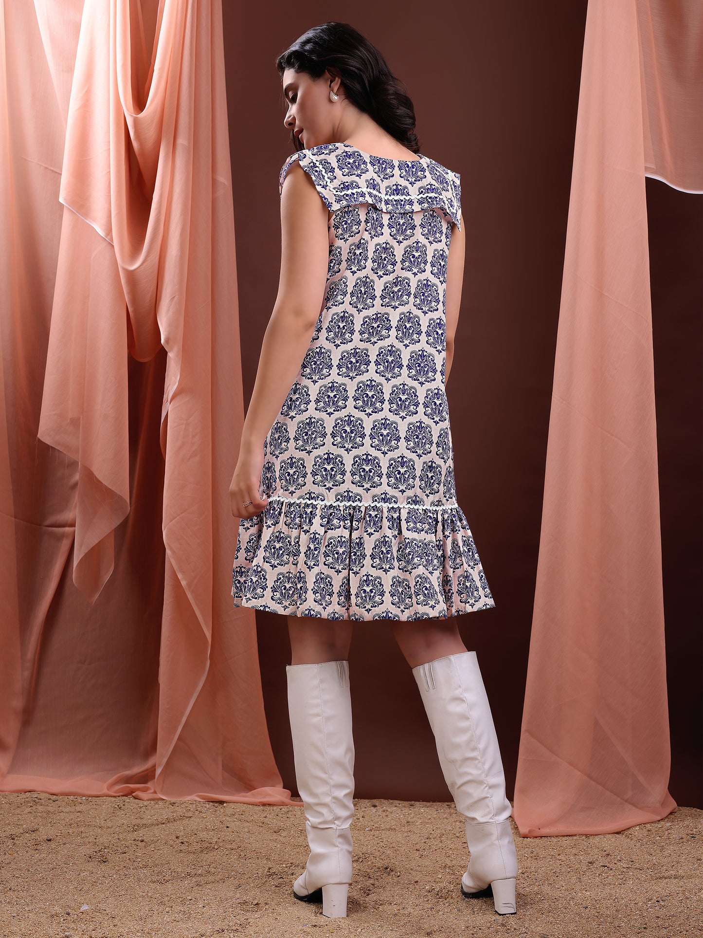 Women's Sleeveless Fit & Flare Mini with Square Neckline Beige Dress