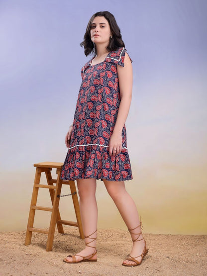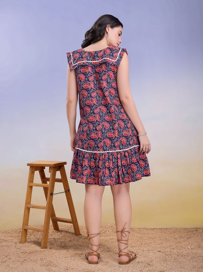 Women's Sleeveless Fit & Flare Mini with Square Neckline Navy blue Dress