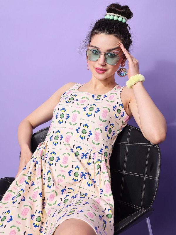 Women Beige Fit and Flare dress