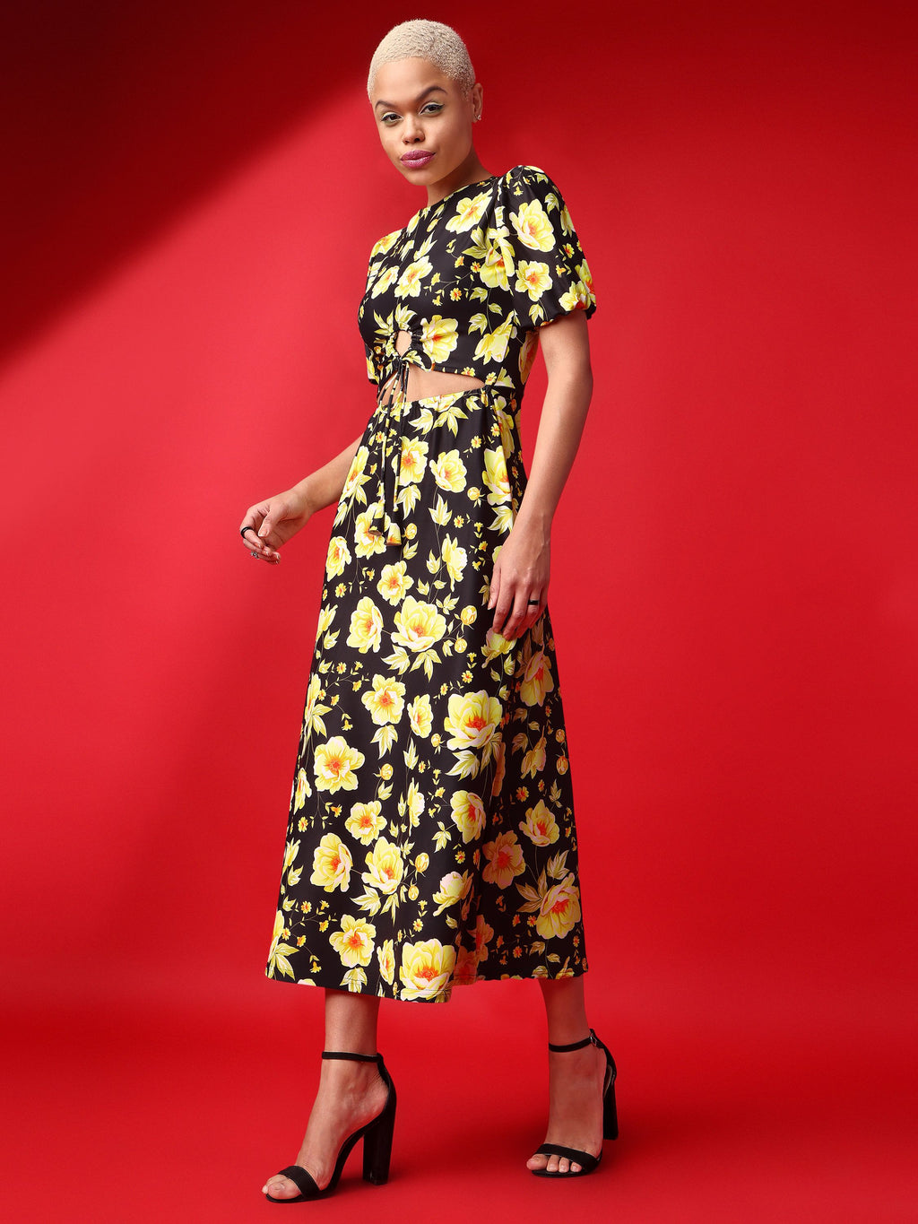 Women Black Puff sleeveDress