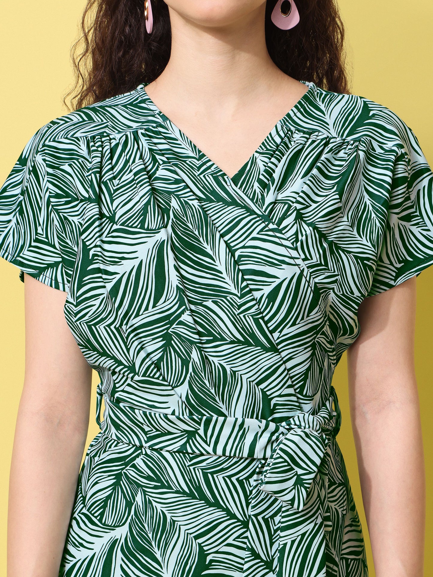 Overlap Green V Neck Dress