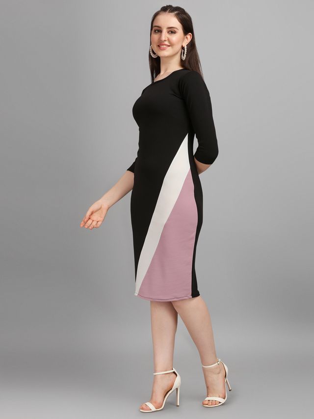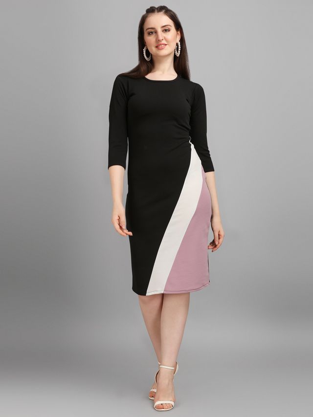 Women Light Violet & Black Fit & Flare dress