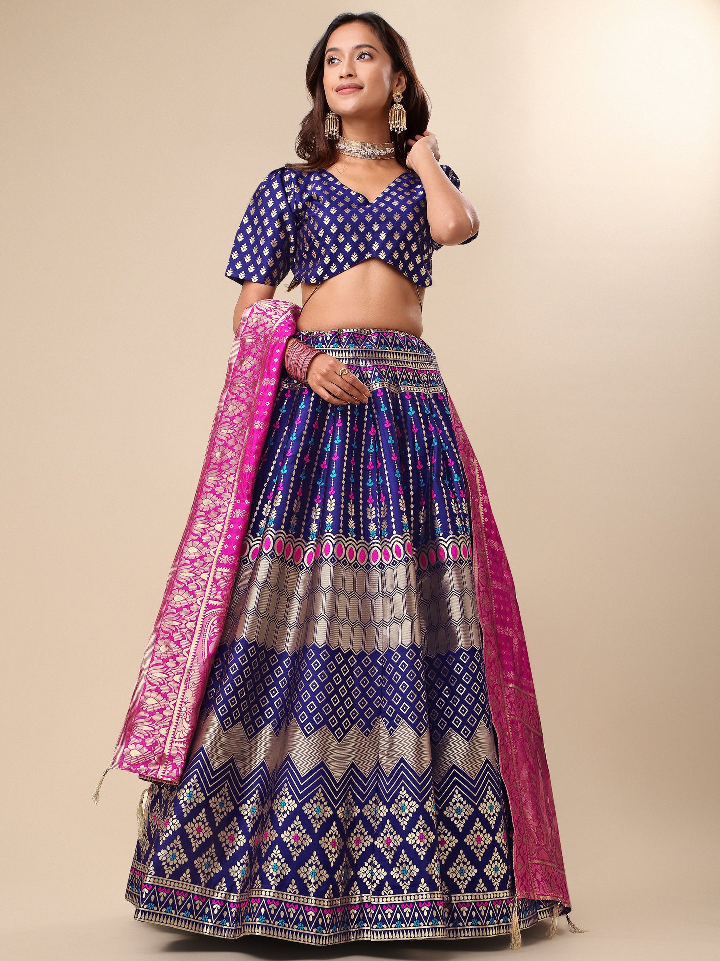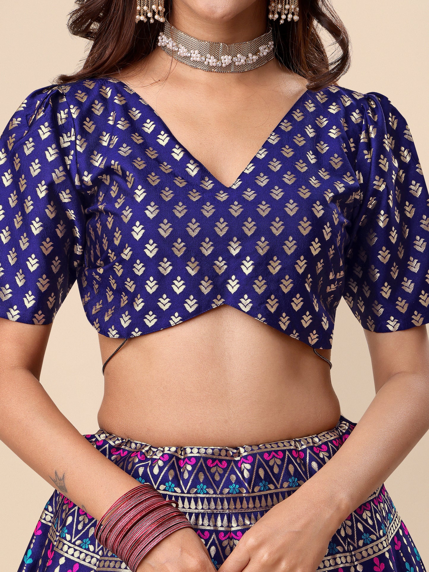 Zari Work Woven Motifs Navy Blue Lehenga choli