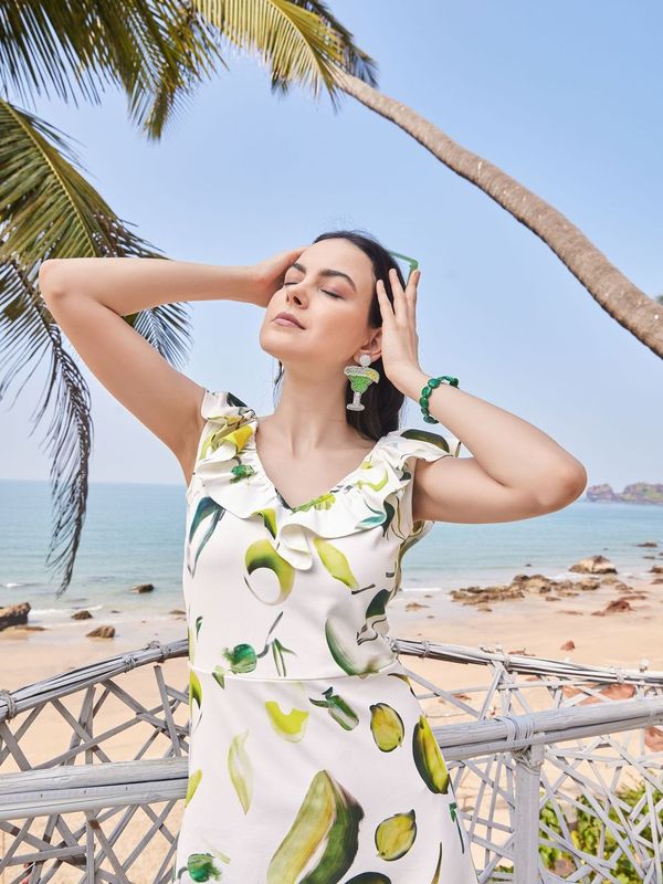Off White Sleeveless A-Line dress