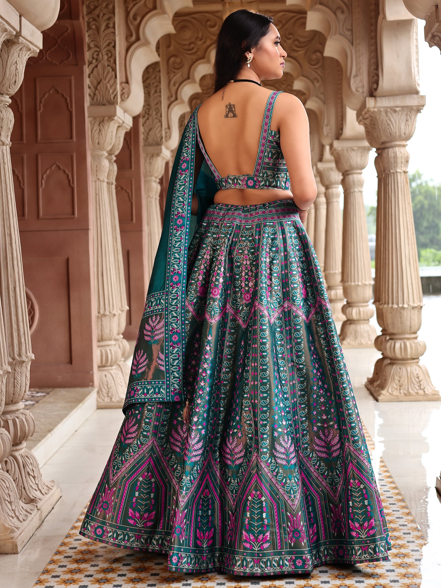 Kanjivaram Lehenga Choli Rama Woven Motifs