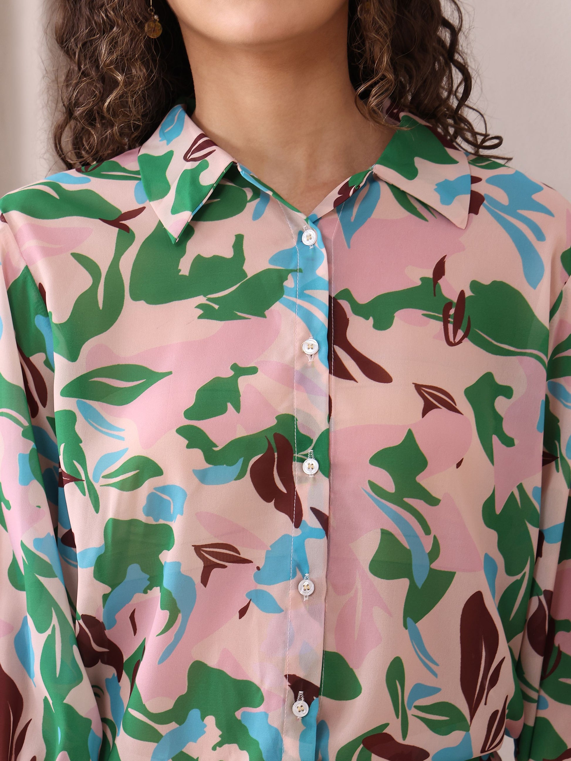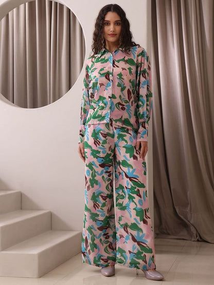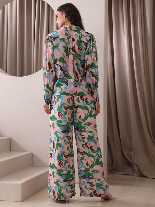 Women's Beige Full Sleeve Collar Neck Shirt Top & Trousers Sets